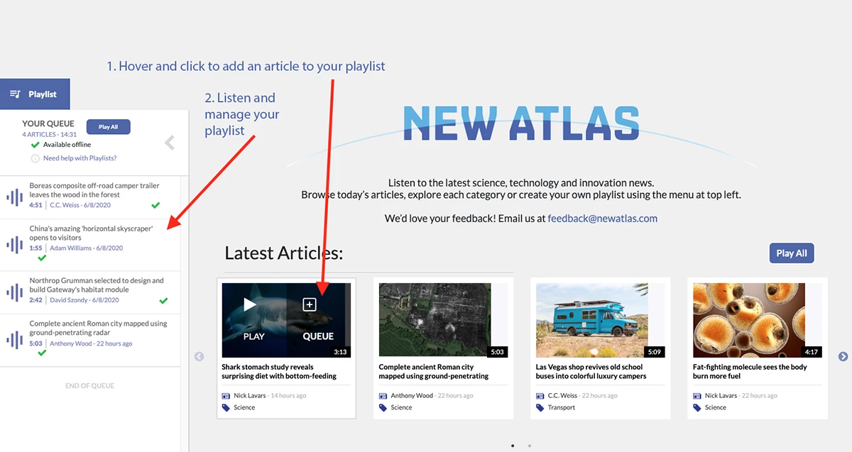 As a New Atlas Plus member you can create personalized audio playlists and listen to the latest articles on the go. Here's how:
