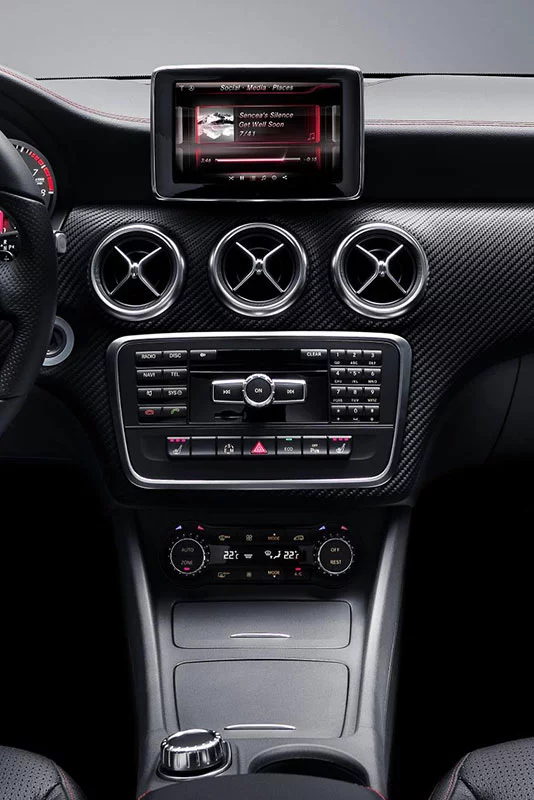 Great care has clearly been taken to make the interior feel like a "real" Mercedes and while you won't find actual machined aluminum and carbon-fiber there are the best approximations that MB could come up with for look and feel without becoming pastiche. The layout is exactly like the vehicle's bigger and more expensive brothers and the A-Class features the fullest integration of it's systems with the iPhone available in any vehicle at this time.