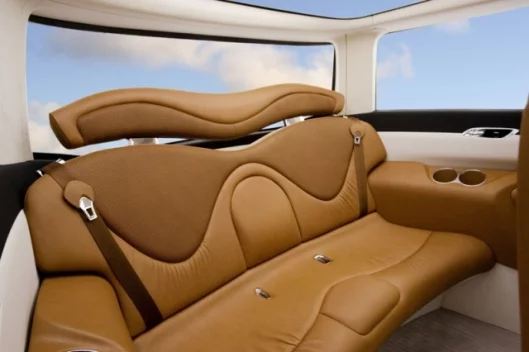Inside the FORUM features a "floating" instrument panel design dual climate controls, Bluetooth® wireless technology and mood lighting under the upper and lower console areas. The built-in console-mounted microwave is sized to fit a standard bag of microwave popcorn and can be reached from both the front and center seats and if that sounds messy - the easy to clean one-inch thick 100 percent wool carpet might come in handy.