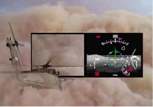 * Adding a 94-gigahertz imaging radar to further improve visibility in “brownouts” caused by sandstorms or the sand kicked up from the rotor wash during desert landings.* Use of LADAR (laser radar) to improve cable detection capability.* Adding infrared sensors to provide better images in clear or hazy conditions.* Digital maps that provide a moving, three-dimensional terrain view and help map areas for hostile threats.* A high-resolution, binocular, helmet-mounted display system — derived from the helmet employed on the Eurofighter Typhoon — that gives pilots 360-degree visibility.* Active control stick technology that provides pilot feedback through dynamically variable tactile cues.