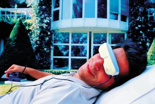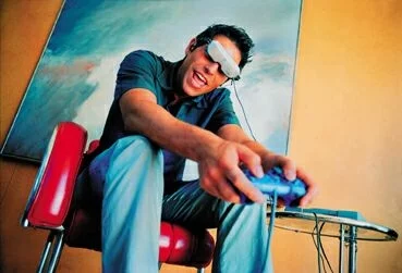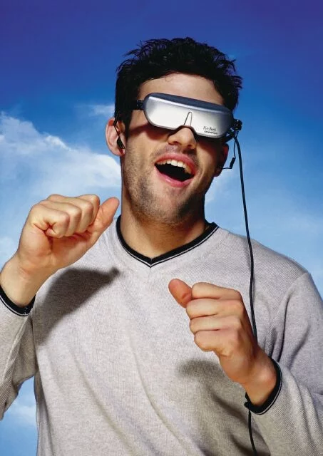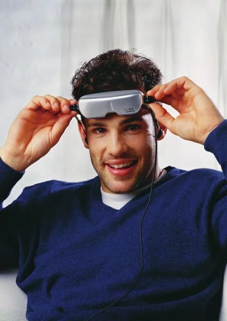 One interesting application of the personal cinema is in the dentist's chair, where children in particular can benefit from the complete distraction offered by wearing a headset - as opposed to the television screens some dentists install in the ceiling or the hanging mobiles featuring blue elephants and clowns that most of us are used to.