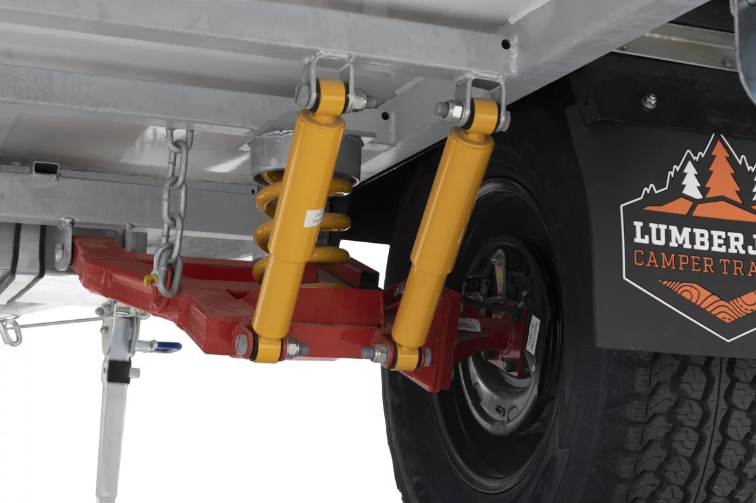 We call it an Aussie tear; Lumberjack goes with "off-road touring hybrid pod style trailer," which certainly sounds like a more descriptive synonym for "Aussie tear." However you categorize it, the Sheoak starts with a hot-dipped galvanized chassis and dual-shock independent suspension supporting the weight of its fiberglass body. Special-edition Lumberjack alloy wheels hold 16-in Goodyear all-terrain tires snugly, and electric brakes bring them slowing to halt. In addition to its 15.6 ft of length, the Sheoak packs 8.2 ft (2.5 m) of height and 7.2 ft (2.2 m) of width.