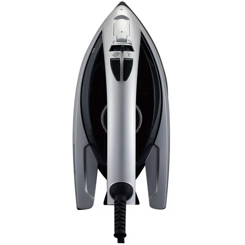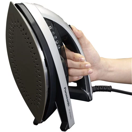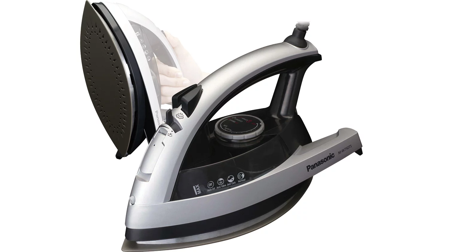The oversized, non-stick titanium soleplate has an elliptical shape with pointed ends. It is also slightly curved outward - this assists in making side-to-side movements smoother and allows you to remove wrinkles in any direction. According to Panasonic, this unique iron can reduce ironing time by 25% over Panasonic conventional corded irons that only move in one direction.