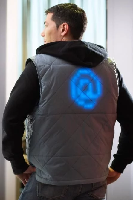 The jackets are comfortable to wear, and the Lumalive fabrics only become obvious when they light up to display vivid colour patterns, logos, short text messages or even full colour animations. The electronics, batteries and LED arrays are fully integrated and invisible to the observer and wearer. The jackets feature panels of up to 200 by 200 mm, although the active sections can be scaled up to cover much larger areas such as a sofa.