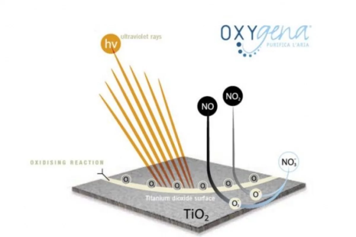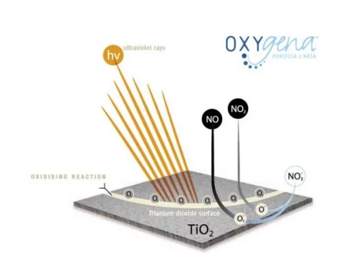 The dioxide is also effective on other pollutants found in the air of a polluted town or city such as PM10, volatile organic compounds, NH3 gas, polyaromatic compounds, formaldehyde and fine dust particles.