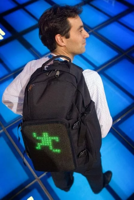 On these substrates, the researchers have placed passive matrices of compact RGB LED packages. The pixelated luminaires with relatively large distance between the RGB pixels have been embedded in such everyday objects as cushions, backpacks, and floor mats. Since the fabric material covering the miniature light sources naturally diffuses light, each pixel seems bigger than it actually is. The LEDs, therefore, remain small and unobtrusive, while the fabric retains its soft look and feel.