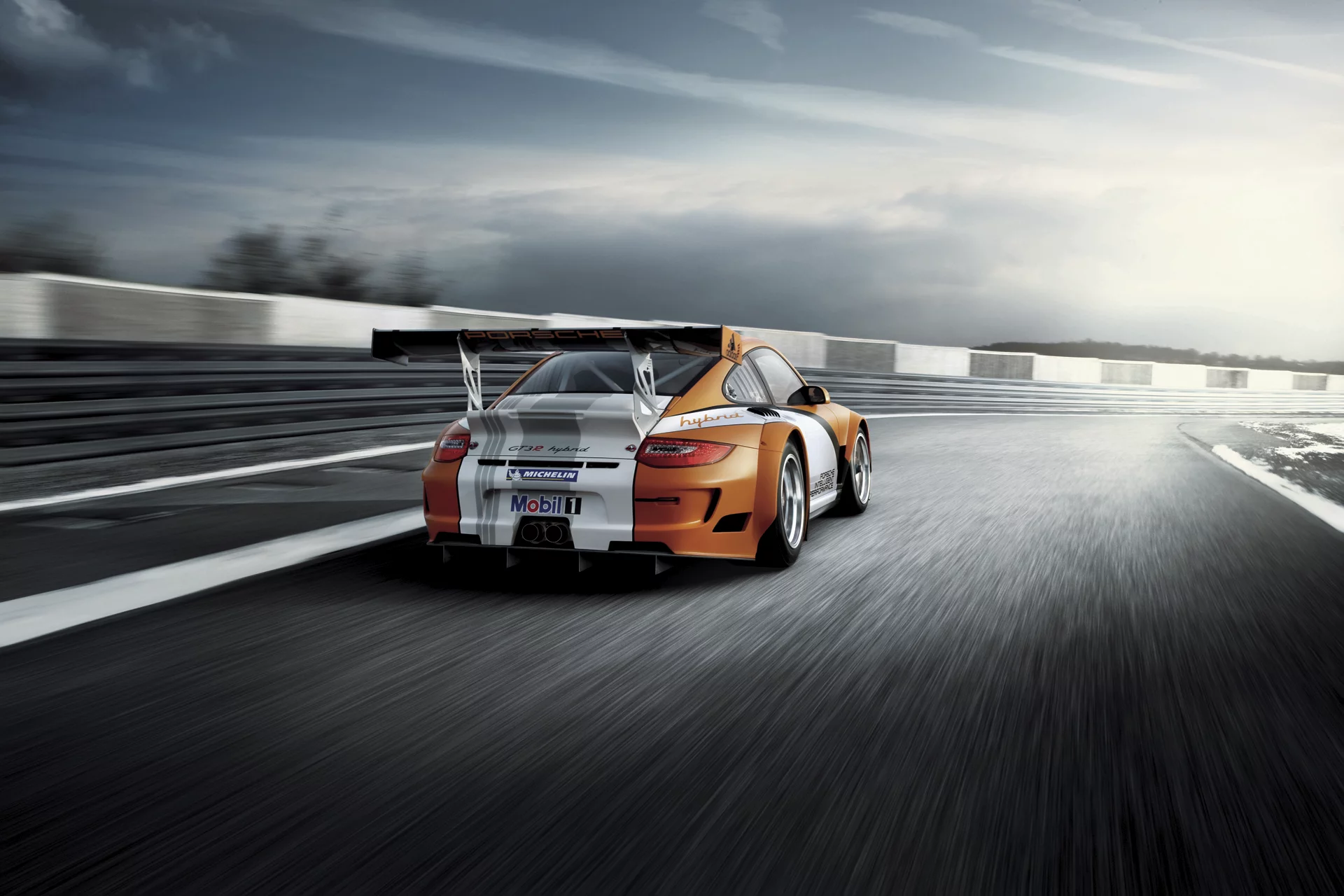 The electrical front axle drive with two electric motors developing 60 kW each supplements the 480-bhp four-litre flat-six at the rear of the 911 GT3 R Hybrid.