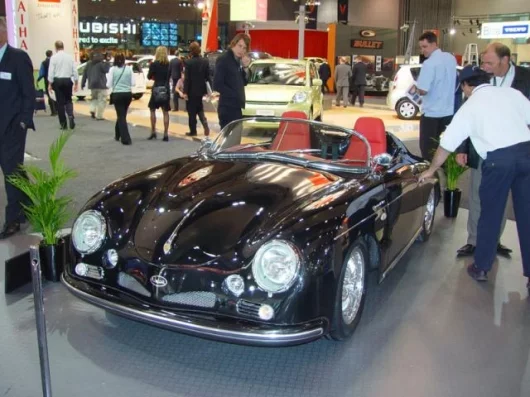 April 14, 2005 One of the stars of the recent Melbourne International Auto Show was a new automobile with a distinctly recognisable shape – the “James Dean” Porsche Speedster reincarnated with a turbocharged 2 litre WRX motor. The Chetcuti is powered by a 160 kilowatt Subaru EJ20 motor and is available in three versions, all based on a 1957 Porsche Speedster: the rear-engined “traditional” shape, a wide-bodied version and a wide-bodied mid-engined version. All three weigh in at around 1000 kg, and offer spectacular performance at around US$55,000.