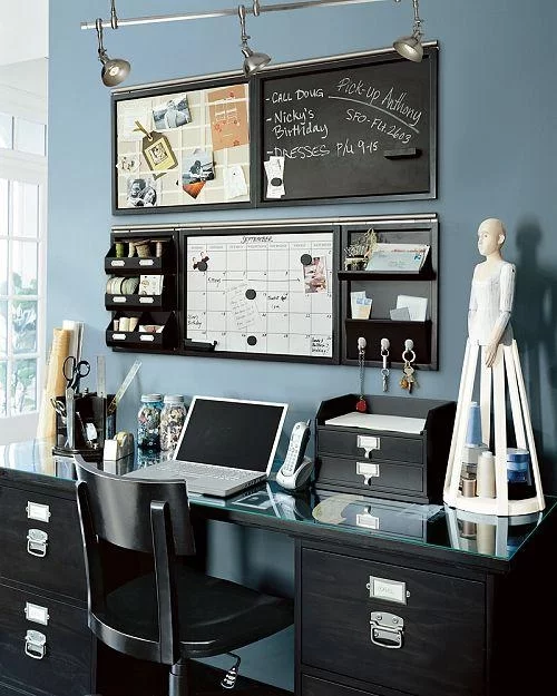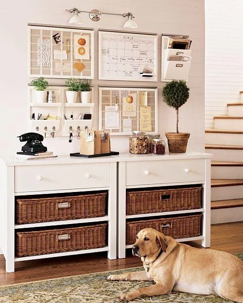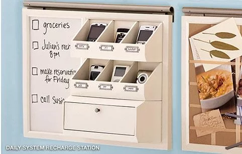 Pottery Barn’s Daily System has a series of modular components (corkboard, letter bin, magazine rack, magnetic chalkboard, whiteboard calendar, an office organizer with three hooks for keys, slots etc) which can be mixed and matched to suit your needs. Pick of the bunch is a new Recharge Station that incorporates Smart Technology so you can organize electronic devices and recharge MP3 players, handhelds, mobile phones and laptops all in one place.