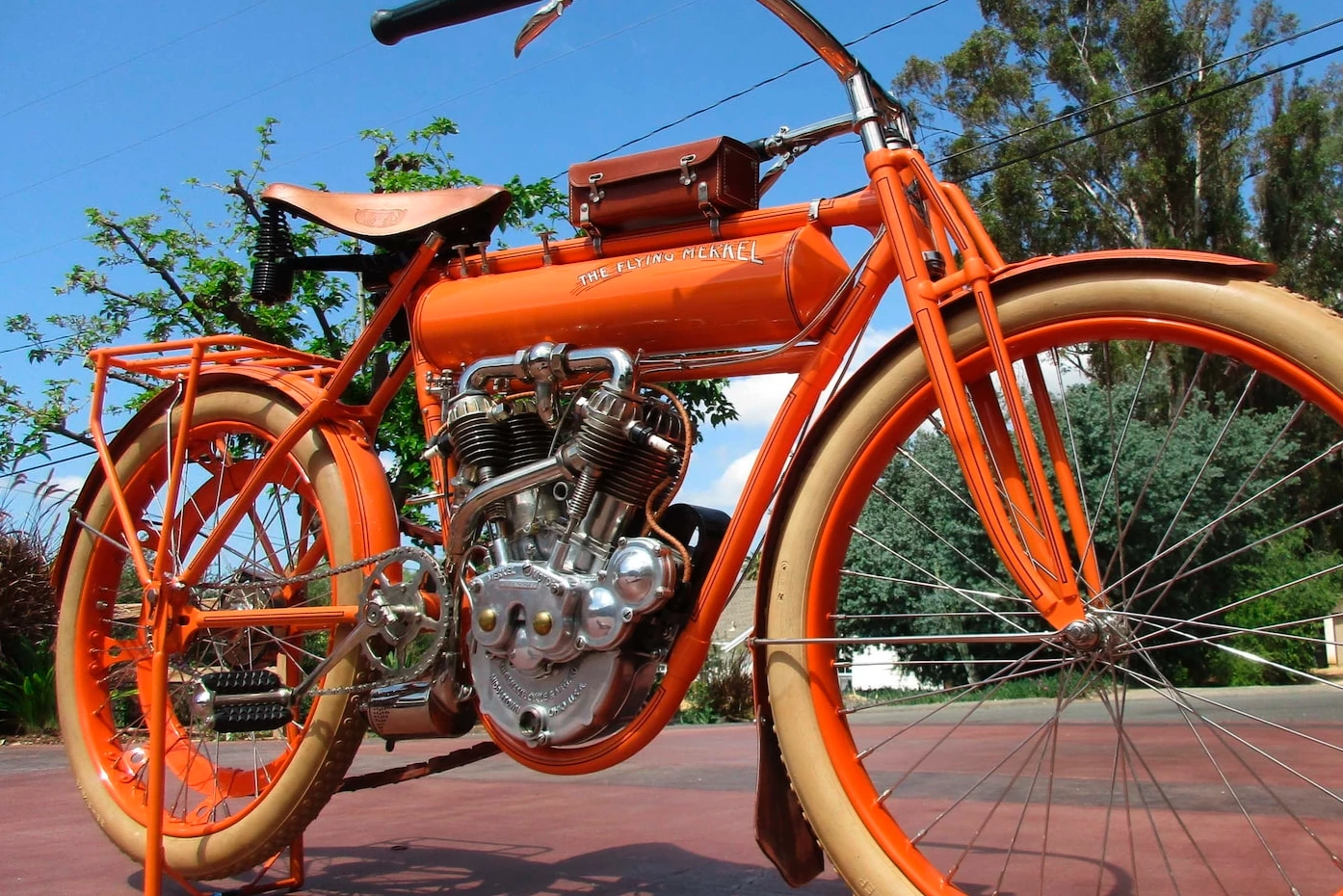 For a company that only produced motorcycles from 1911 to 1915, Flying Merkel has carved itself a disproportionate share of the world collector bike marketplace. The record price for a a Flying Merkel V-twin is $423,500 set at the EJ Cole Collection sale in 2015 for an original as-raced 1911 Board Track Racer, but there have been many sales of Flying Merkel V-twin road bikes over $100,000, with the highest being $192,500 for a 1914 Flying Merkel V-twin road bike at Monterey 2015, $176,000 for a 1914 Flying Merkel V-twin road bike at Monterey 2019, and $168,247 (£104,540) for a 1914 Flying Merkel 980cc V-twin at Bonhams Autumn Stafford Sale in 2014.