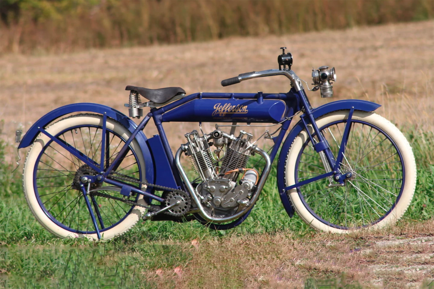 This 61 ci (1000cc) 1914 Jefferson Twin from the Waverley Manufacturing Co. of Jefferson, Wisconsin is one of just two Jefferson road bikes known to exist. Due to the excellent performance of the Jefferson OHV V-twin engine, a number of board track 1000cc V-twins are still in existence because they were highly prized. By the engine number, we can tell that this bike is from the last days of production. It’s gorgeous, rare as hell, and if the board trackers that used exactly the same engine were considered fast, then you’ve got a ripsnorting 106-year-old motorcycle that can break the speed limit. Could go much higher if someone wants it for their collection – after all, there are only two.