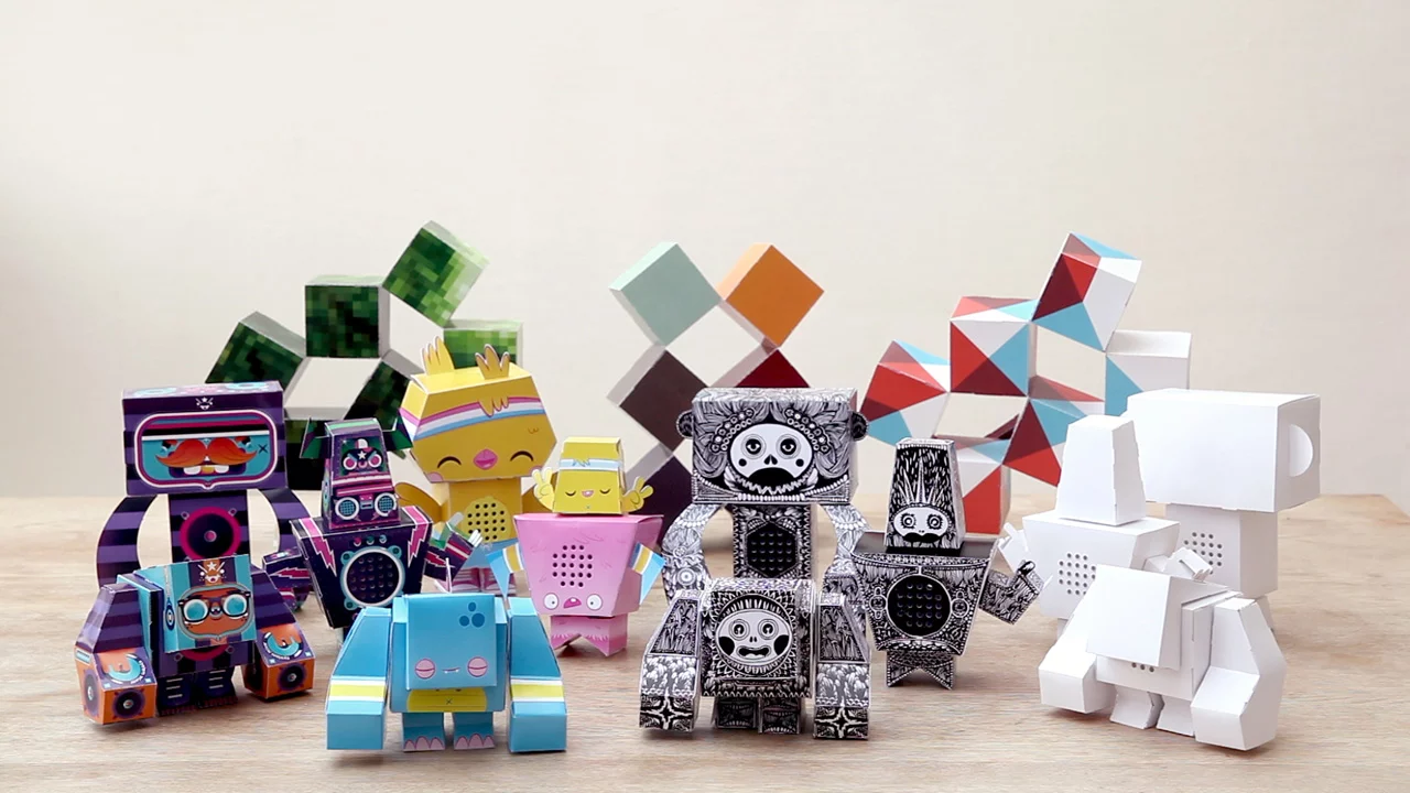 While the "brain" of ReaDIYmate offers functionality for adults, the "body" is where there's potential fun for children (of all ages). The servomotor and speaker box can be covered with paper designs, and 19 different bodies ranging from cute robots to dancing chicks have been created by international artists. They all come in a variety of options including blank templates ... ready to be decorated by you, or an artistic little one.