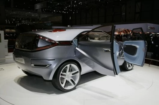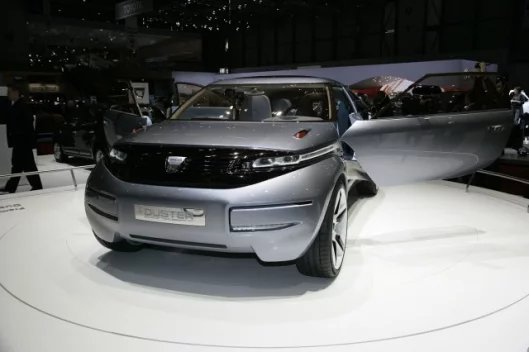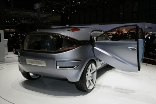 March 7, 2009 Dacia, Renault’s Romanian brand, launched its first-ever concept car at Geneva, an innovative leisure vehicle that revives the Duster nameplate. Designed largely in Romania by the Renault Design Central Europe studio in Bucharest, it’s a coupe Multi Purpose Vehicle crossover with three doors – a single door on the driver’s side and two doors, including a rear-hinged ‘suicide’ door, on the passenger side. The innovative interior is extremely functional – the passenger seat slides below the driver’s seat, allowing a large, 2-metre long load bay capable of accommodating a bicycle or even a small motorbike. A tailgated box structure also slides out of the rear of the car, creating an extra pick-up load bed.