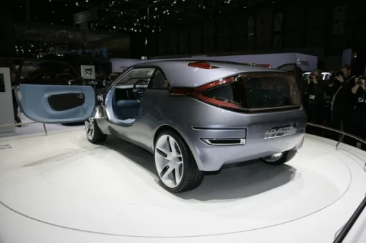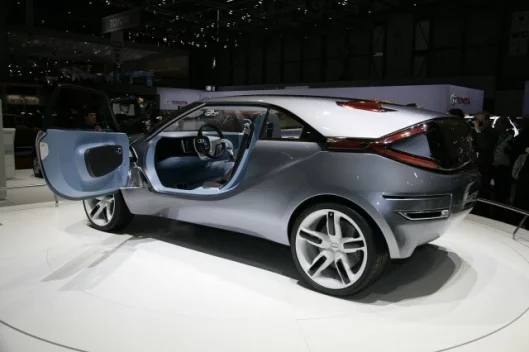 The concept car's two-tone chocolate and blue interior exudes a sense of well-being and conviviality. The fully glazed roof floods the cabin with light, while the enveloping forms of the staggered slim-line front seats provide first class comfort and support. The driver's seat is incorporated in a structure which extends all the way from the sill to the centre console, forming a sculptural, one-piece ensemble that echoes the exterior's sporty appeal.