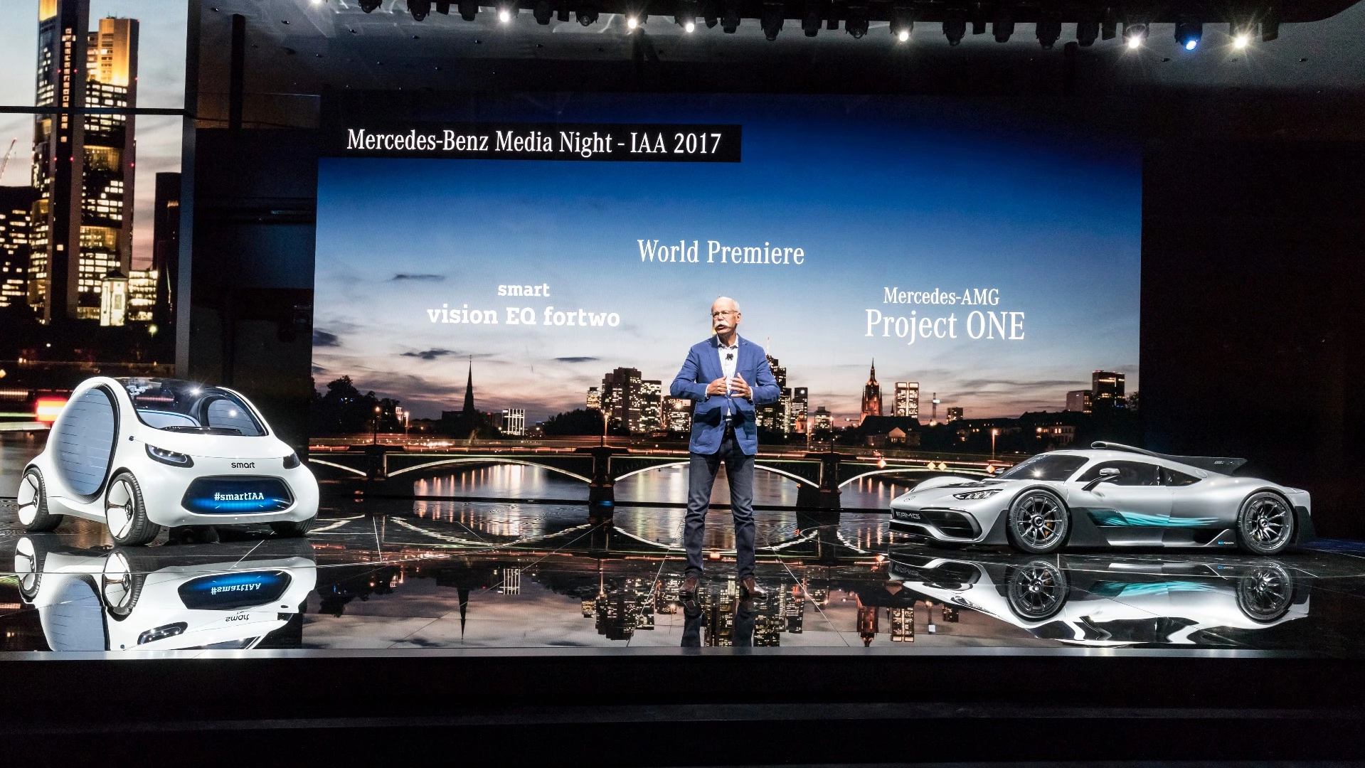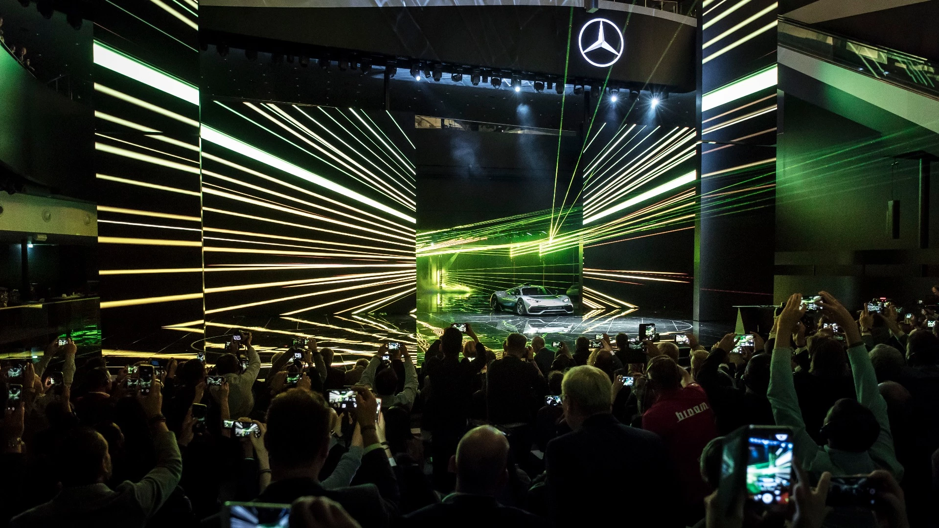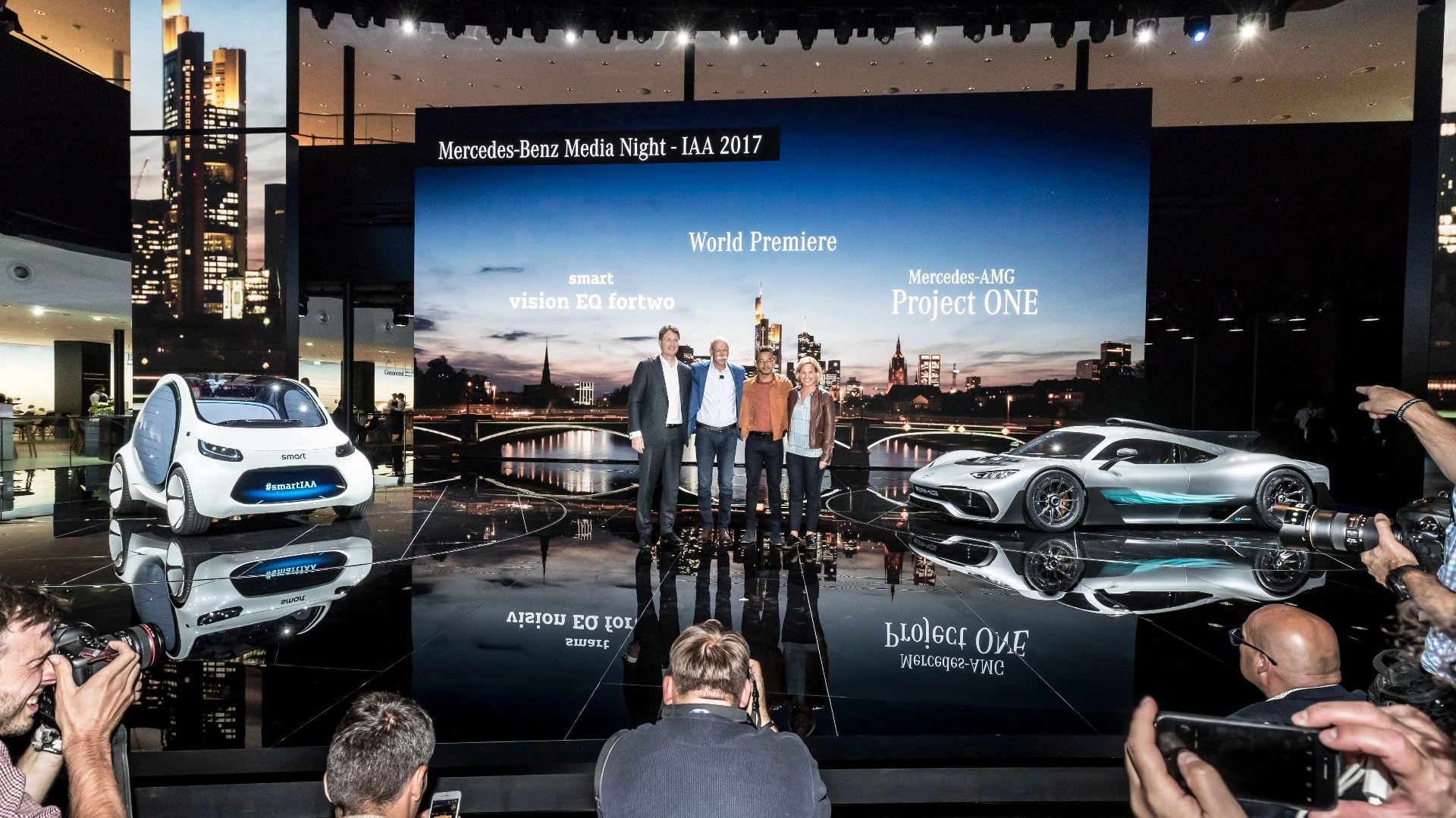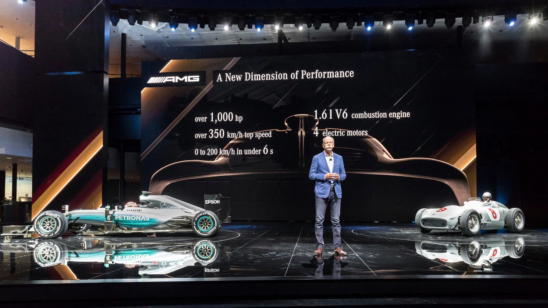The Mercedes-AMG Project ONE was driven onto the presentation stage by triple Formula 1 World Champion Lewis Hamilton who joined the head of Mercedes cars, Dr. Dieter Zetsche, for the full unveiling.