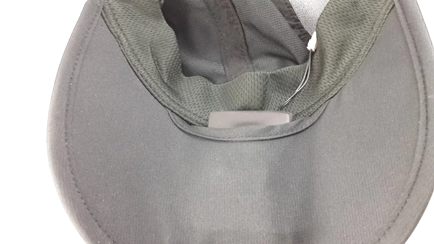 The hat itself is standard enough. It's made of a thin, machine-washable fabric and has a Velcro strap in the back that lets you adjust the fit (making it tighter helps with the sound).