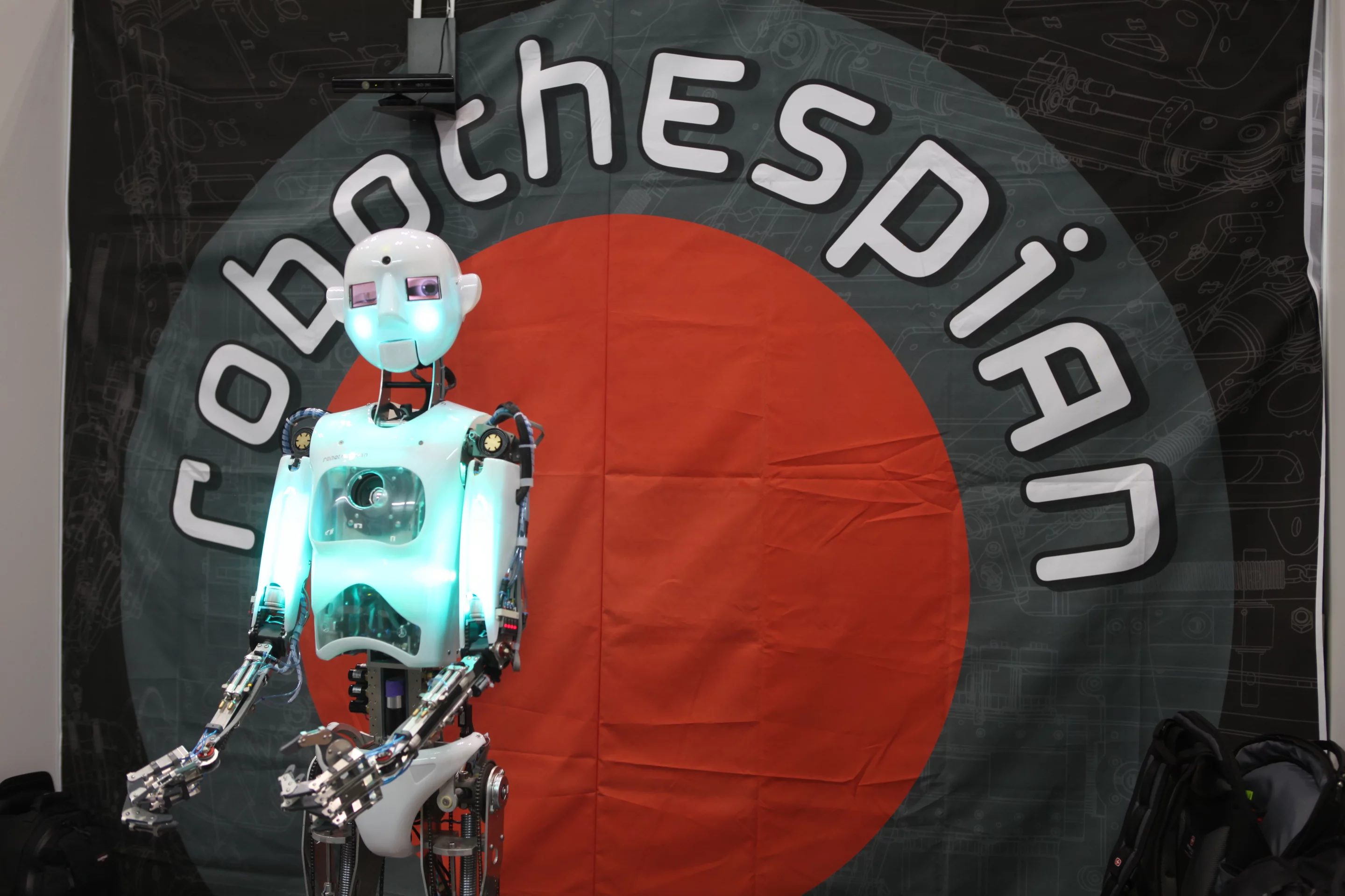 Robothespian is a web connected device and it can be controlled via an online interface. You can see what the robot sees, and you can tell it what to do or say from virtually anywhere in the world, which makes it a powerful telepresence tool. The robot can also handle interaction with humans independently, as it's capable of looking up answers to queries on the Web. It can also control theater lighting and multichannel sound. Most importantly, however, it can work day and night without a break and without compromising the quality of the performance.