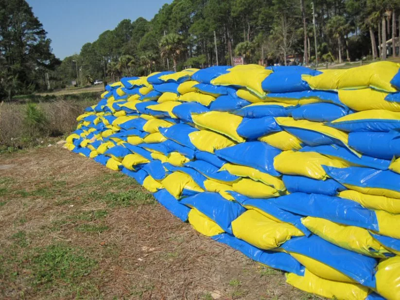 Tradition sandbags form a cylinder when filled. While the required width-to-height ratio for a conventional sandbag wall is three-to-one, walls built with Sand Bricks can be stacked at two-to-one. Sand Bricks also need 25lbs of sand to fill while regular sandbags take around 40 lbs making them less of a back-breaker. This means less bags, less sand and less labor.