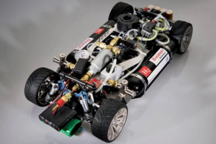 August 16, 2005 A BMW powered by hydrogen small enough to race around a lounge room has been built by technology students in Germany. The revved up racer is an
