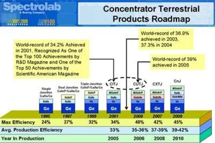 December 7, 2006 Spectrolab has achieved a new world record in terrestrial concentrator solar cell efficiency. Using concentrated sunlight, Spectrolab demonstr