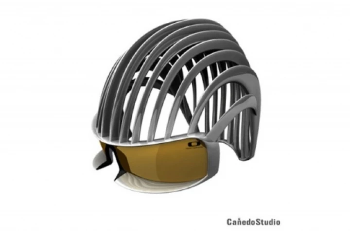 Although on one hand it may look like an industrial brain slicer, the design is indeed intended to protect one's noggin, with weight being distributed evenly across the arch structure to reduce pressure on the bridge of the nose.