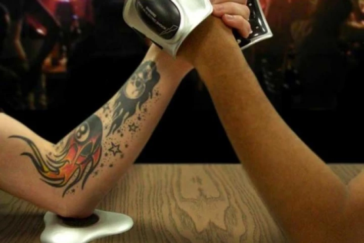 April 25, 2006 Given that it’s the most obvious way in which two males can exercise their testosterone without outright violence, arm wrestling probably predat