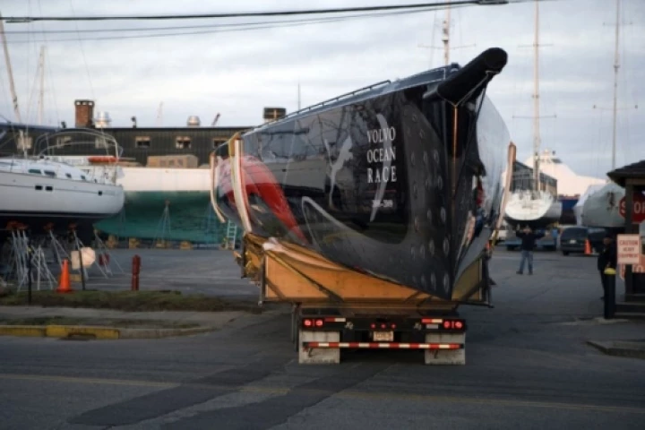 These images provide a tantalizing preview of the as yet unnamed PUMA entry for the Volvo Ocean Race 2008-2009 before it hits the waters of Boston Harbor for its official christening on May 12th.