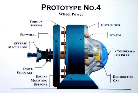 Recognising the potential of his invention Di Pietro decided to fully focus on the development of the new motor concept. The principle worked with the first prototype and, although not built to fine engineering tolerances, its performance far exceeded expectations.