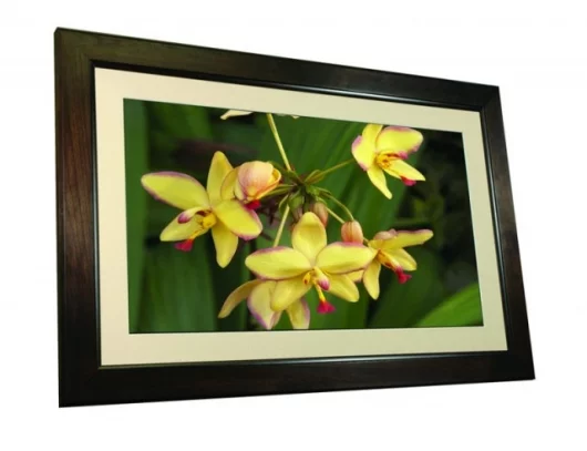 The wall mountable unit also includes RF remote control that operates at a distance of up to 100ft and is compatible with Microsoft Windows Live Photo Gallery. The included OptiPix Pro photo management software does also copies and optimizes photos from your computer so that the original remains unchanged.