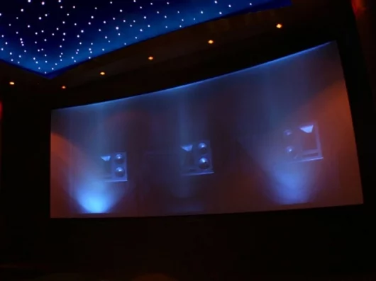 With curved-screens fast gaining popularity among high-end home theater aficionados for their more immersive effect, excellent light performance, and superior geometry with the latest high-performance anamorphic lenses, SmX have also announced Pro-Curv - a fixed-curve screen-framing and installation system for Cinemascope-type front-projection installations. Pro-Curv is available in 40-foot-radius curves (the most widely used), plus curves of 30 and 20-foot radius. SmX offers Pro-Curv screens in widths ranging from 80 inches to 24 feet and in all aspect ratios, with virtually unlimited custom sizing and scaling.