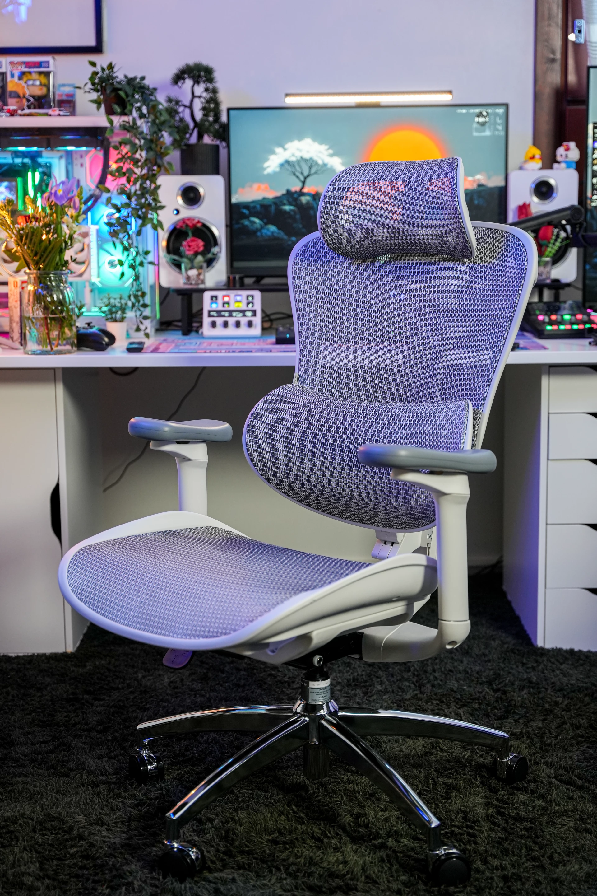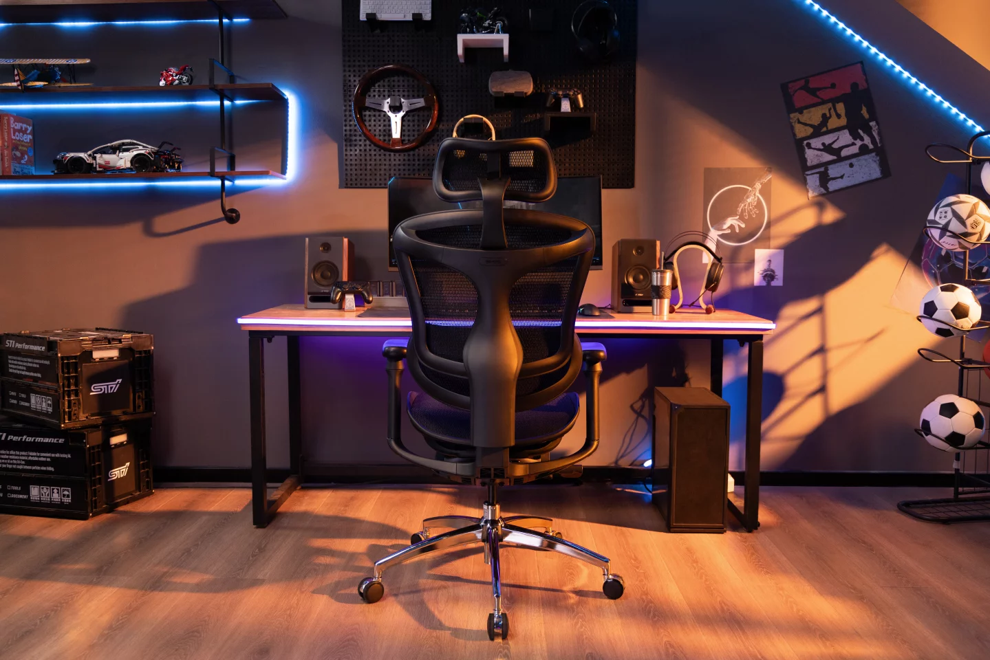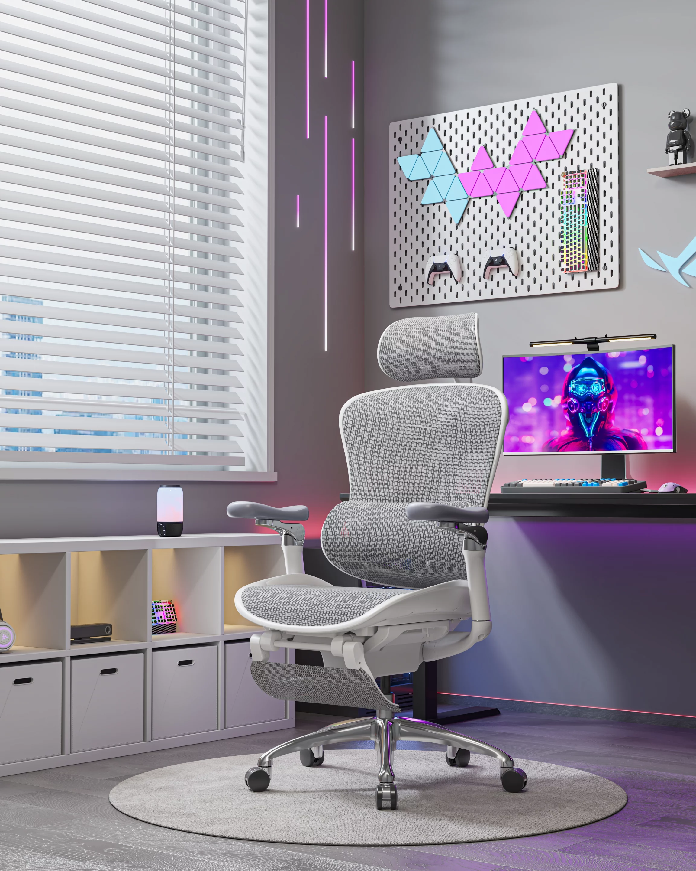 The chair’s 4D coordinated armrests extend this adaptive philosophy to the arms and shoulders. Adjustable in multiple directions and able to pivot through a wide range of motion, the armrests are designed to support different activities, from keyboard and mouse use to controller-based interaction or relaxed reclining. Their coordinated movement with the backrest helps maintain consistent arm support as the chair reclines, reducing load on the shoulders.