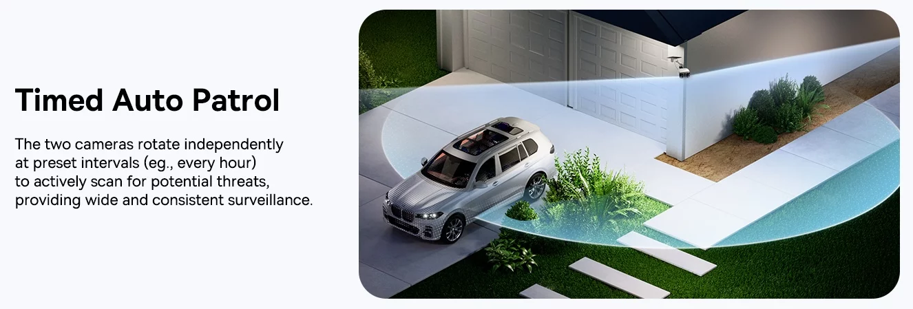 The X1 Pro doesn’t wait for trouble – it actively looks for it. With Dual Sentry and Patrol Modes, the cameras automatically rotate at preset intervals to scan for potential threats. Its PIR motion sensors remain alert even on standby, instantly activating recording and tracking when movement is detected within a 26-foot (8-meter) range.