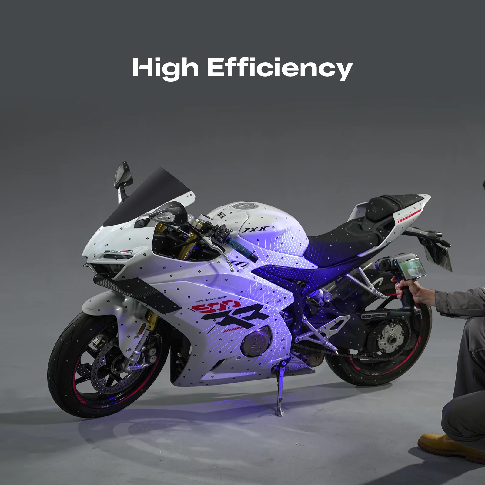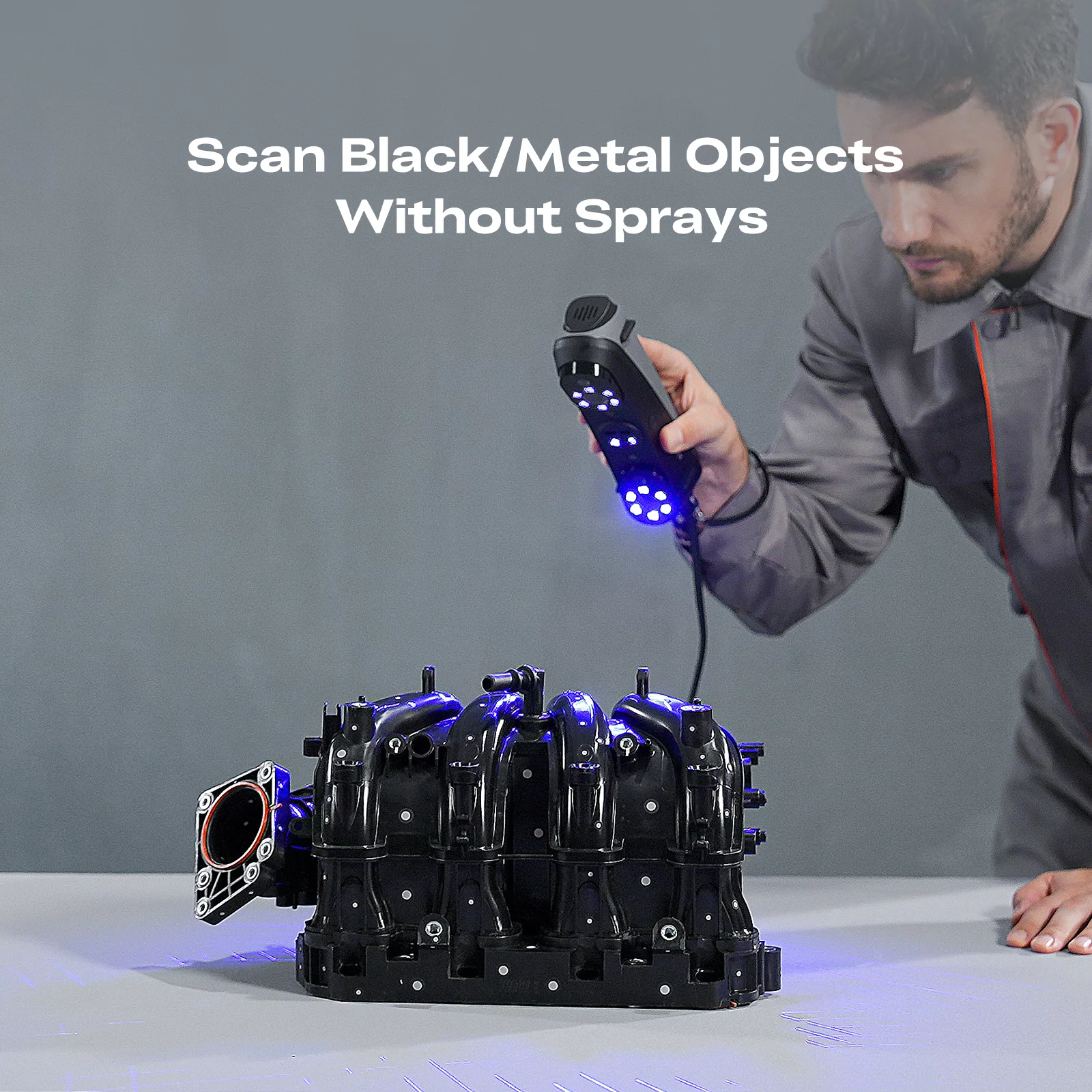 A standout feature is the scanner’s multi-light structured system, which uses a combination of blue lasers, NIR light, and four-lens stereoscopic vision to capture complex geometries and challenging surfaces. That includes dark, reflective, or metallic objects that typically require surface prep or extensive manual correction in lower-cost scanners. With capture speeds up to 90 fps, it also supports efficient workflows for professional environments where time matters.