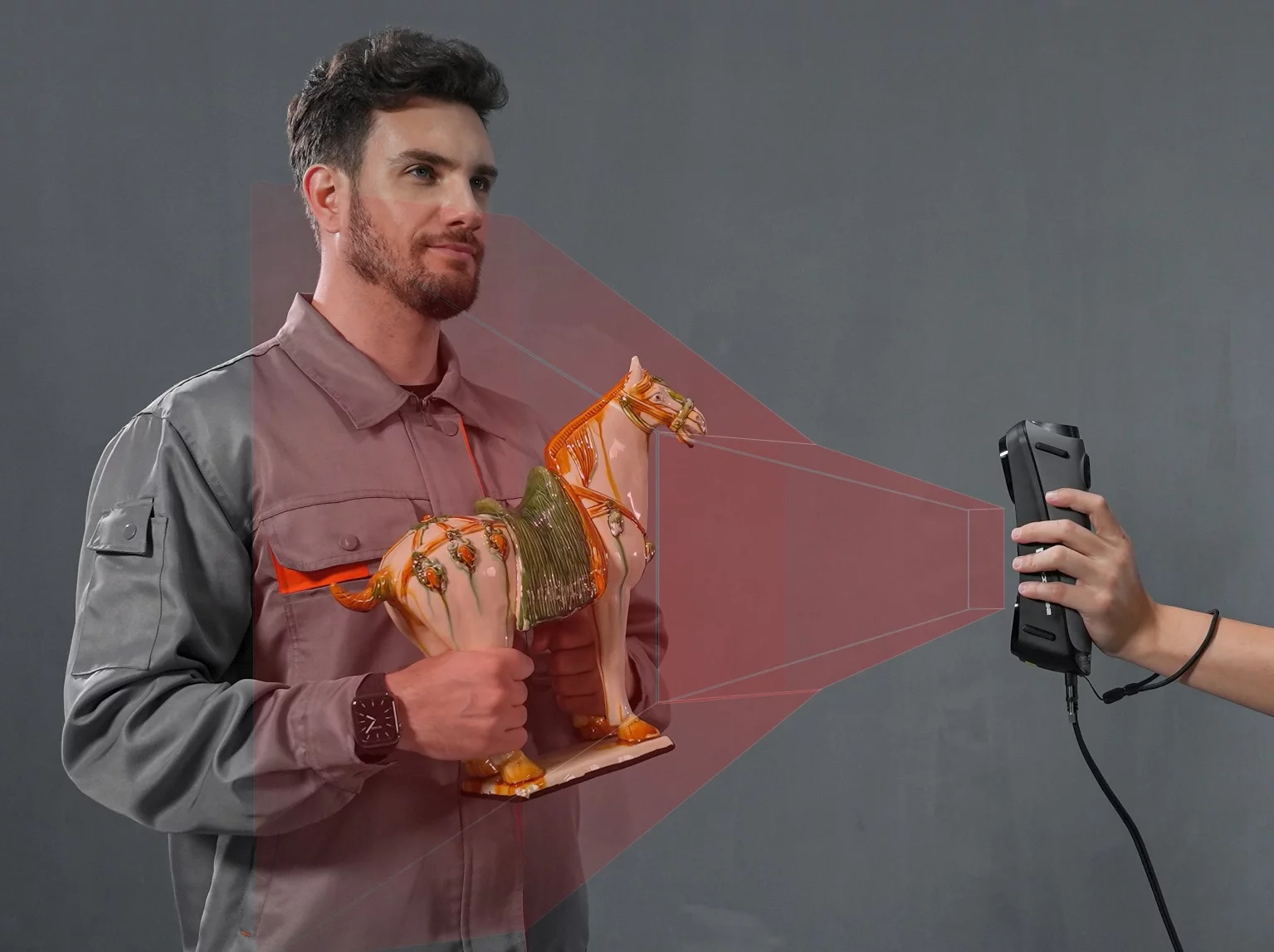 Its versatility is one of its biggest strengths. The Otter Lite can handle objects from 20 mm (0.8 in) up to 2,000 mm (6 ft 6 in), making it just as comfortable digitizing small figurines and collectibles as it is capturing medium-sized components for 3D printing or repair. Thanks to its 4-lens stereo vision and improved optical setup, the scanner doesn’t struggle with dark or metallic surfaces – an issue that plagues many lower-cost systems.
