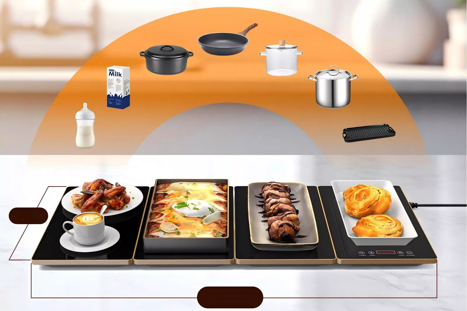Feppo’s upgraded Electric Warming Tray brings innovation to the dining table. This modular, expandable system connects up to four detachable panels, adapting seamlessly from weekday dinners to festive feasts. The elegant black-and-gold design features a large tempered glass surface measuring 33 inch × 15 inches (83.8 x 38.1 cm) that can hold up to six to eight dishes at once – explosion-proof, waterproof, oil-resistant and easy to clean.