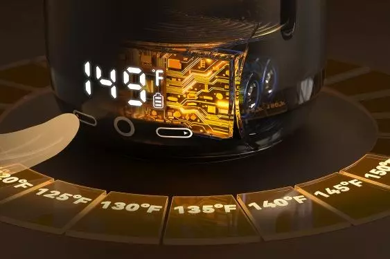 Choose your ideal warmth – Warm (130 °F/54.5 °C), Hot (140 °F/60 °C), or Piping (150 °F/65.5 °C)) – with a single button. The mug’s aerospace-grade titanium and ceramic interior preserve pure flavor while offering durability that outlasts countless refills.