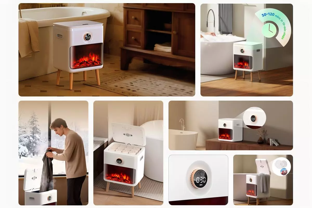 Using Rapid Heating Technology, it reaches cozy perfection in just 20 minutes, while a stepless timer knob and LED display allow users to fine-tune the heat from 30 to 120 minutes. The experience is more than functional, with the realistic flame display and aromatherapy basket adding an ambient glow and soothing scent that turn an ordinary bathroom into a home spa.
