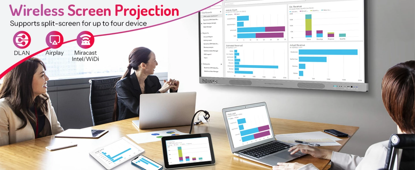 Collaboration is at the heart of the HKMLC Smart Board’s design, and its pre-installed Eshare Pro screen casting software is a game-changer. This industry-leading software makes wireless screen sharing effortless, allowing users to mirror content from their devices with exceptional performance and minimal latency. Whether you’re presenting a detailed spreadsheet in a meeting or streaming a video during a lecture, Eshare Pro ensures a smooth and reliable connection. Gone are the days of fumbling with cords and adapters—this smart board simplifies connectivity to keep your focus on what matters most.