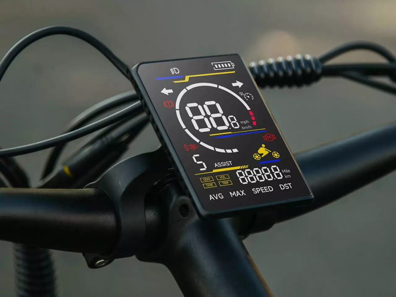 The frame and rear rack are made of high-carbon steel, with a net weight of 35kg. The rear rack is built for real cargo, and dual fenders protect against mud.A central color LCD display clearly shows speed, assist level, battery status, and trip information.The seat is height-adjustable, combining comfort with adaptability for different riders.