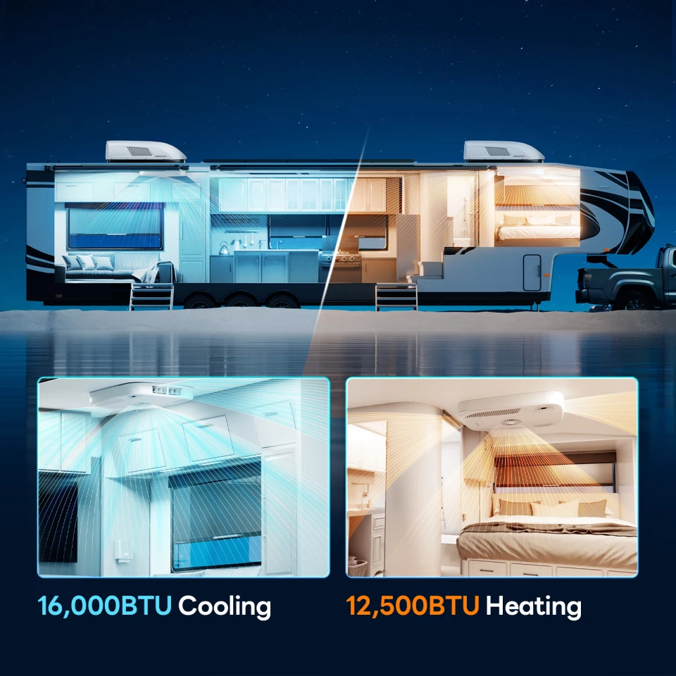 This isn’t just an air conditioner—it’s a complete, all-season climate system. On a bright April weekend, it keeps your RV cool after a long hike or paddle. When temperatures plunge after sunset, switch seamlessly to heating mode. One unit handles both extremes, eliminating the need for separate heating solutions and freeing up space and energy.