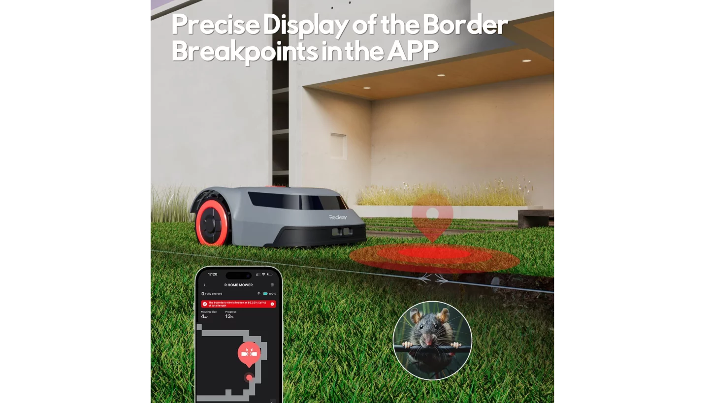 If pets or tools damage the boundary wire, most mowers require time-consuming manual detection – not the MGC500 and MGC1000. Redkey's mobile app features a one-click breakpoint locator and improves repair efficiency by 90%!