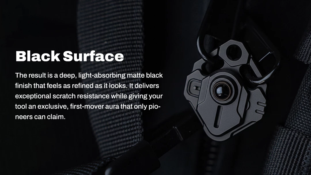 Thanks to its structural strength, Trident can serve not only as a zipper lock, but also as a small-eye gear attachment point. It integrates aspects of a connector, mini tool carrier, and carry accessory, combining protection with visual refinement and system compatibility.