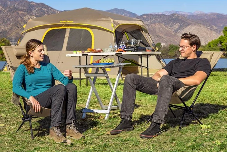 For couples or families, the Zeta L11 Duo Pro double camping chair provides spacious seating and strong support up to 600 pounds, making it ideal for relaxing by the campfire.