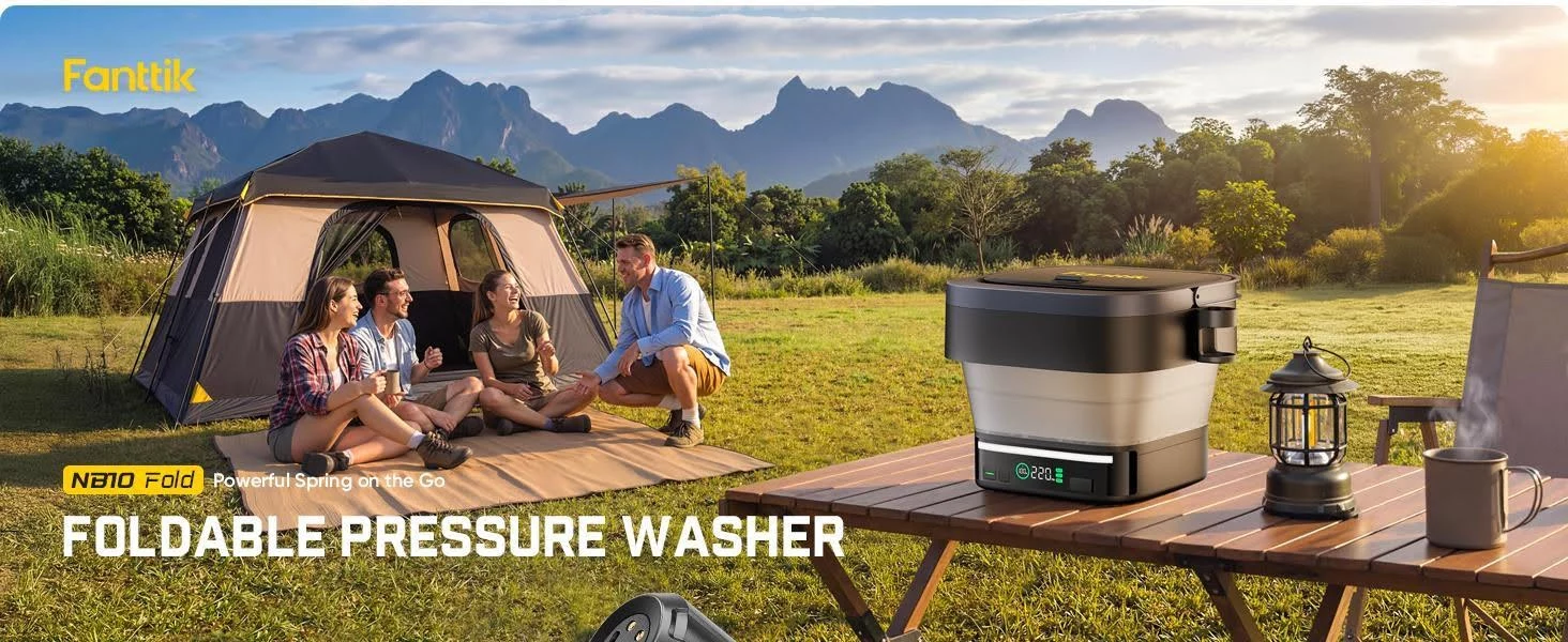 Keeping the campsite clean is another often-overlooked part of outdoor comfort. The NB10 Fold cordless pressure washer offers a compact solution with a foldable 3.2-gallon water tank and three adjustable pressure modes. With up to 30 minutes of operation and a versatile 5-in-1 spray nozzle, it’s useful for rinsing off gear, cleaning muddy equipment, or washing off after a long hike.