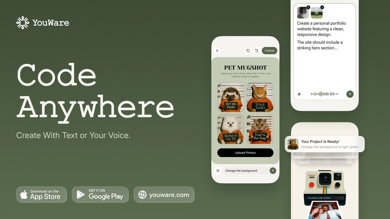 Unlike traditional website builders that merely skin the surface with visual templates, YouWare operates on a distinct philosophy: creativity should not be tethered to a desk or limited by technical proficiency. After extensive testing of its web and mobile applications, it is clear that this platform handles the heavy lifting of true full-stack engineering—generating pixel-perfect frontends, constructing secure backends, managing complex databases, and executing one-click deployments.