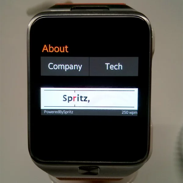 Static blocks of text like the one you’re looking at now are an antiquated and inefficient way to get words into your head. That’s the contention of Boston-based startup Spritz, which has developed a speed-reading text box that shows no more than 13 characters at a time. The Spritz box flashes words at you in quick succession so you don’t have to move your eyes around a page, and in my very quick testing it allowed me to read at more than double my usual reading pace. Spritz has teamed up with Samsung to integrate its speed reading functionality with the upcoming Galaxy S5 smartphone.