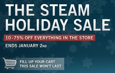 December 29, 2008 If you forgot to get a Christmas present for yourself, now is as good a time as ever to hit Steam. With a minimum 10% off everything in the store and critically acclaimed games like BioShock and Portal available for just US$4.99, you're bound to find something suitable.