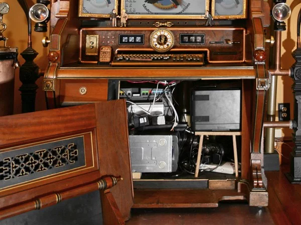 Bruce Rosenbaum told Gizmag that the Desk is just the latest in a series of modified and modernized antique appliances and furnishing to find a home in their restored Victorian house on Pleasant Street in Sharon, Massachusetts: "My wife and I started to restore and modernize our own Victorian/Craftsman 1901 home about 10 years ago and wanted to create a Victorian aesthetic, but also have all the modern conveniences of today. We started with our kitchen and enjoyed the process so much, we started ModVic in 2007 and have been Steampunking or ModVic-ing ever since. My wife was crazy enough to let me go crazy with the latest innovation – our Victorian Organ Command Desk."