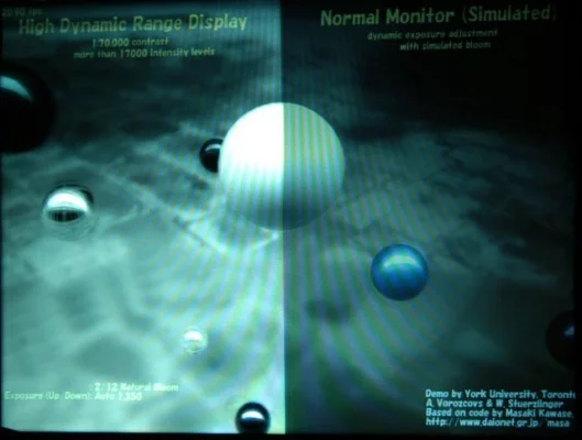 The HDR display accomplishes an 100-fold improvement in dynamic range by leveraging the optical properties of standard components, yet is completely compatible with existing computer video cards.
