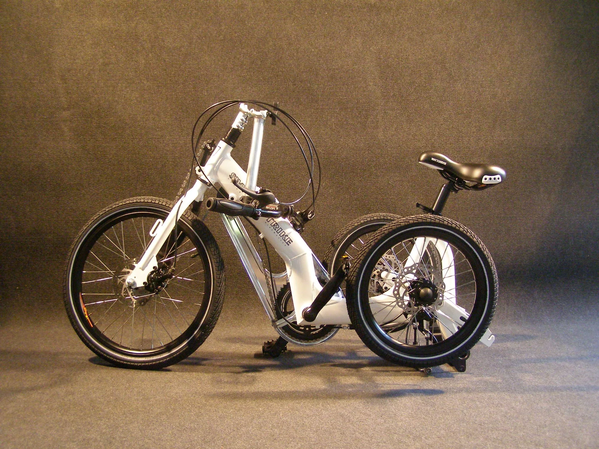 The Swingtrike has disc brakes all around, 20-inch wheels at the in front and 16-inches in the rear. Its standard three gear system can be upgraded to a Shimano eight gear hub and other options include include a child seat, aluminum carrier, lighting system and mudguards. It's also foldable for storage and transportation and retails for EUR1,699.